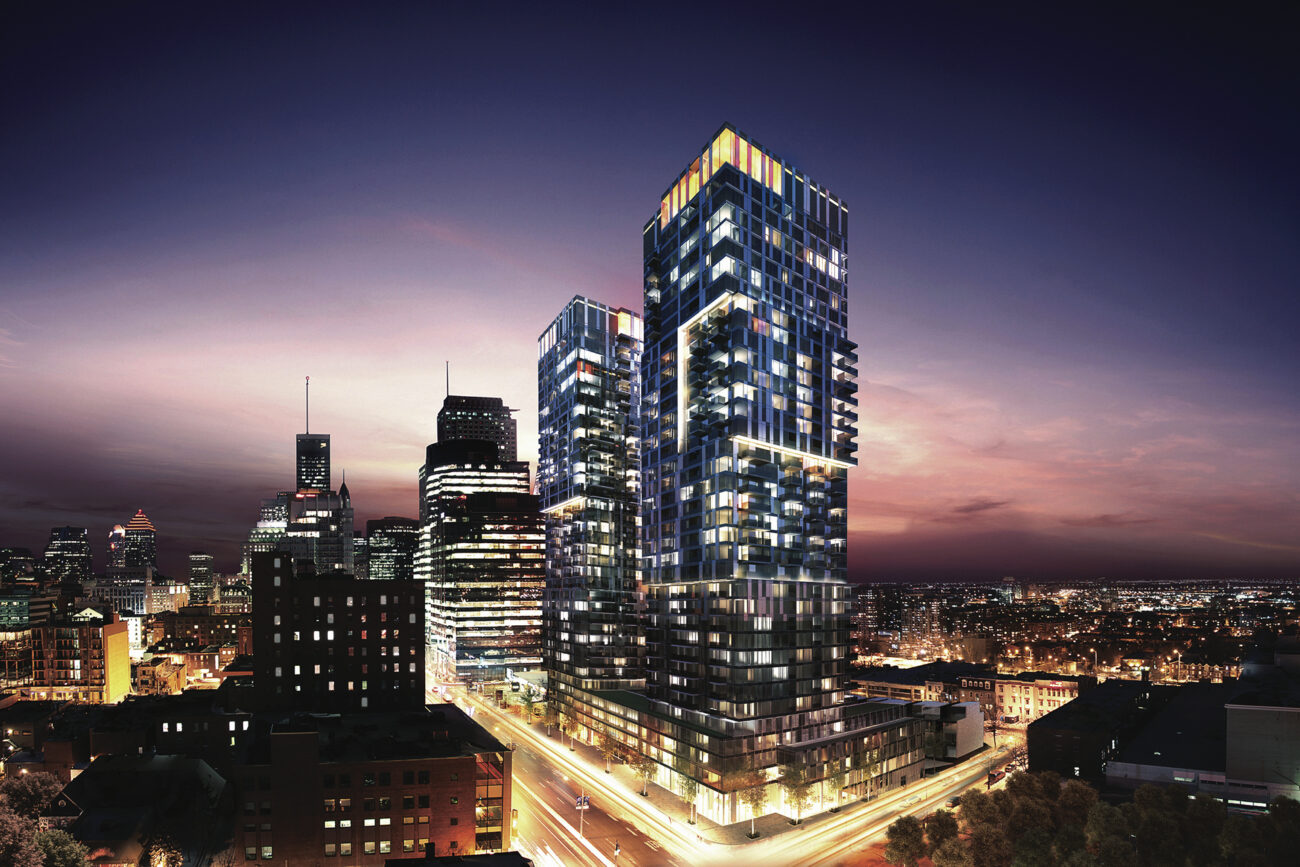Located between the effervescent Quartier des spectacles and the vibrant Griffintown, YUL is the most prestigious residential project in downtown Montréal. Led by the Brivia Group and Tianco Group, two renowned real estate promoters, this audacious project will offer magnificent townhouses and condominiums with an unbeatable view over the city, for occupancy in 2017.