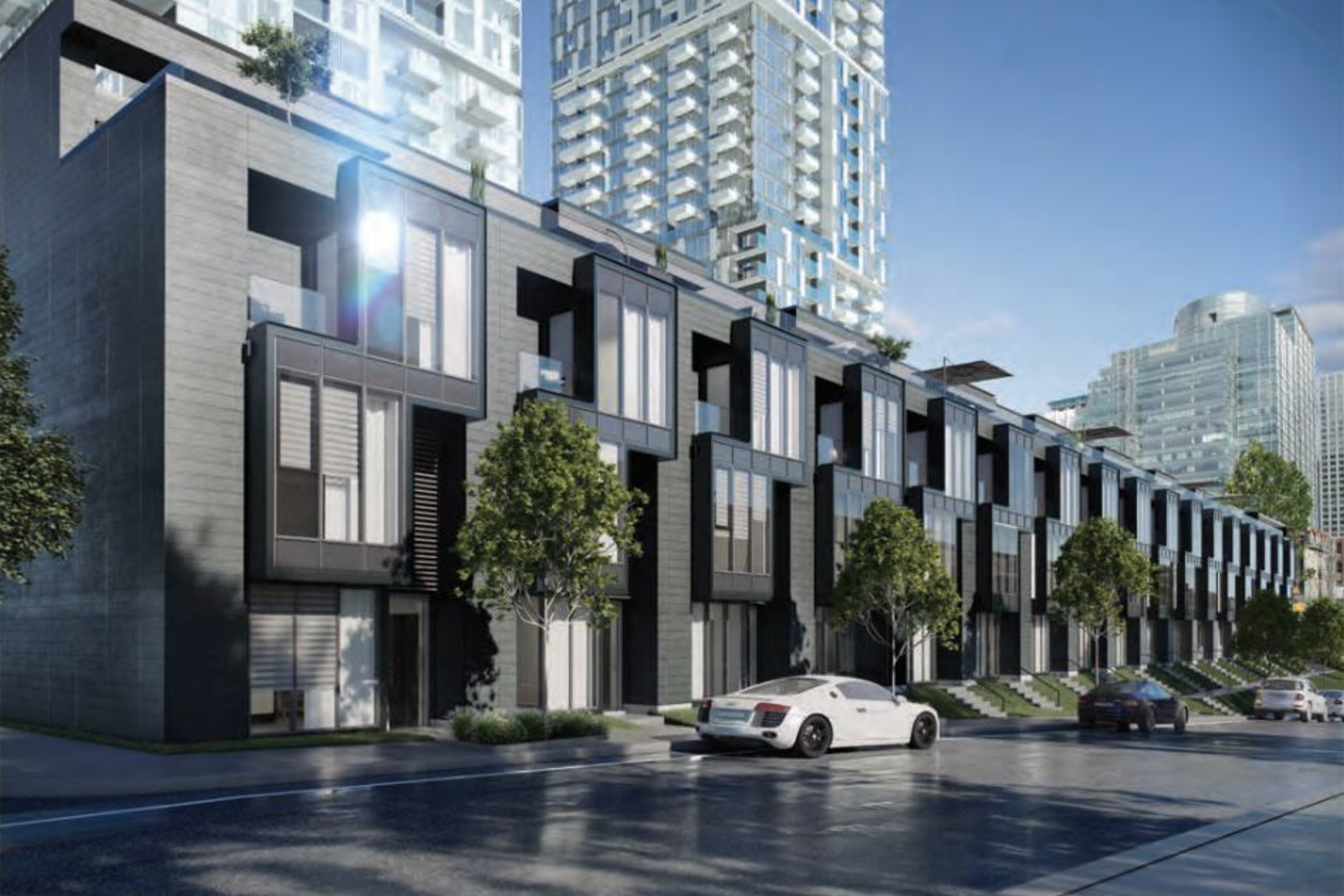Located behind the towers on a quiet street, seventeen townhouses will delight those who want the independence of a house with all the advantages of fully equipped shared spaces. They will include 2,500 square feet of living space over three storeys (with terrace) leading onto an extraordinary landscape garden.