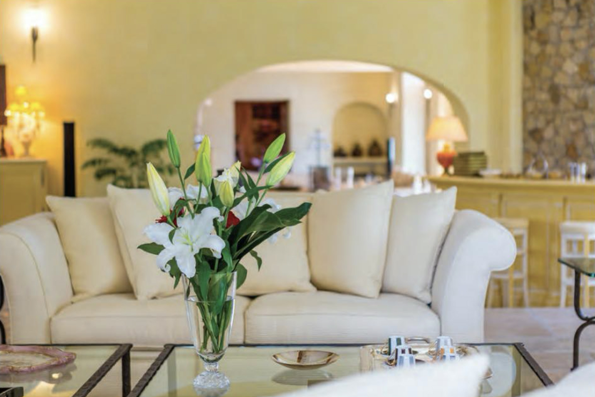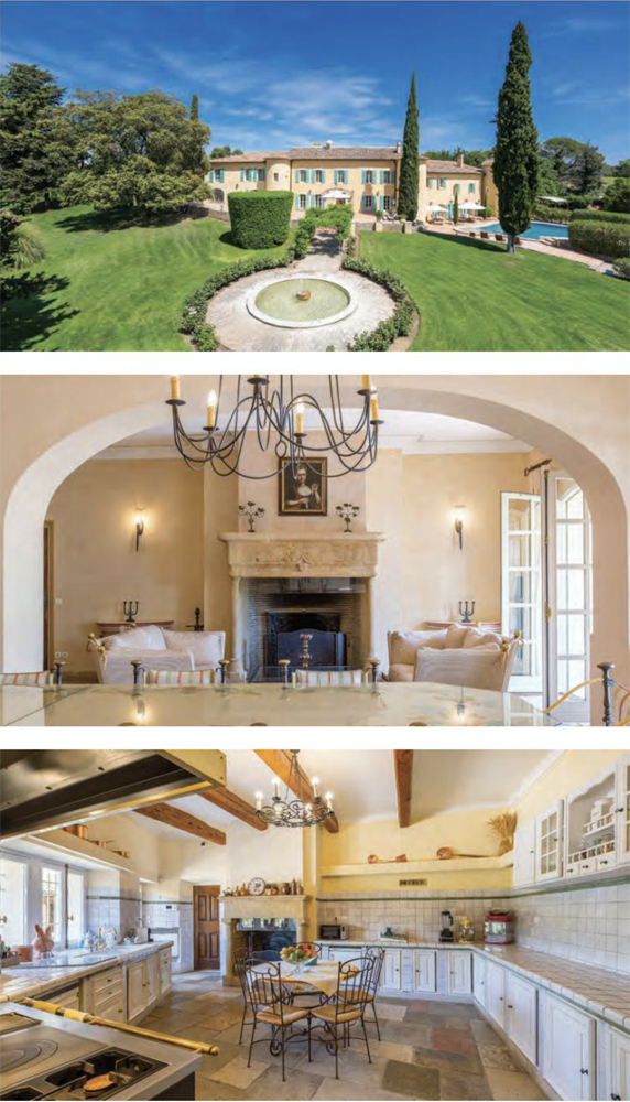The majestic two-storey châteauhas an area of 7,530 square feet. It has largereception areas, including two salons and two dining rooms with fireplaces, and is decorated with true Provençal charm. There is also a fully equipped kitchen, a library decorated with old-fashioned charm, a billiard room, a sauna and a fitness room. Upstairs are nine warm, spacious bedrooms, each beautifully decorated and with its own bathroom.