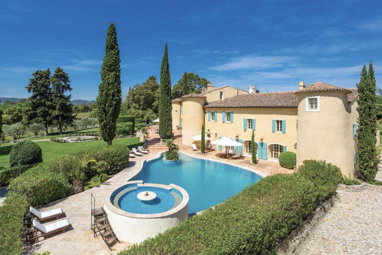 The outside has not been neglected. A pool with Jacuzzi, pétanque andtennis courts and an immense park inhabited by a few goats: the château has everything you need to take advantage of the good weather. Of course, anyone who wants to hop over to Saint-Tropez or Monaco in a few minutes can do so easily from the estate’s heliport. The services of a major-domo, chef and housekeeper are included.