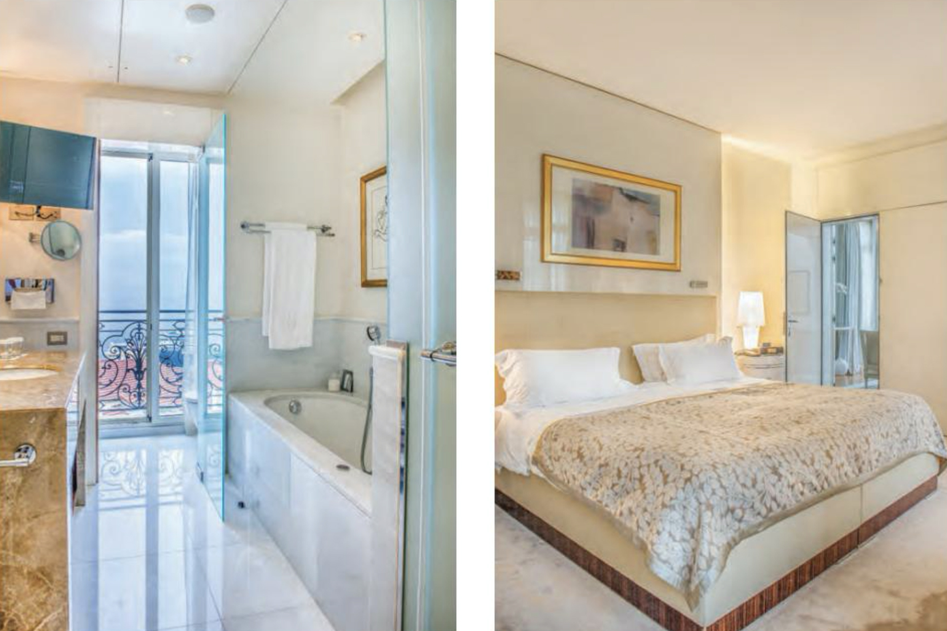 The Hôtel Hermitage was almost entirely renovated between 2003 and 2011, with an extraordinary attention to detail that smoothly marries classical authenticity and technological progress. For instance, the Salle Belle Époque restaurant, one of the hotel’s treasures, and the winter garden, built by disciples of Gustave Eiffel, are emblematic of its elegance. The rooms were renovated in a classical style with contemporary touches. Louis XVI shepherdesses keep elegant company with graceful furnishings made of mahogany and ivory stained wood to create a refined décor.