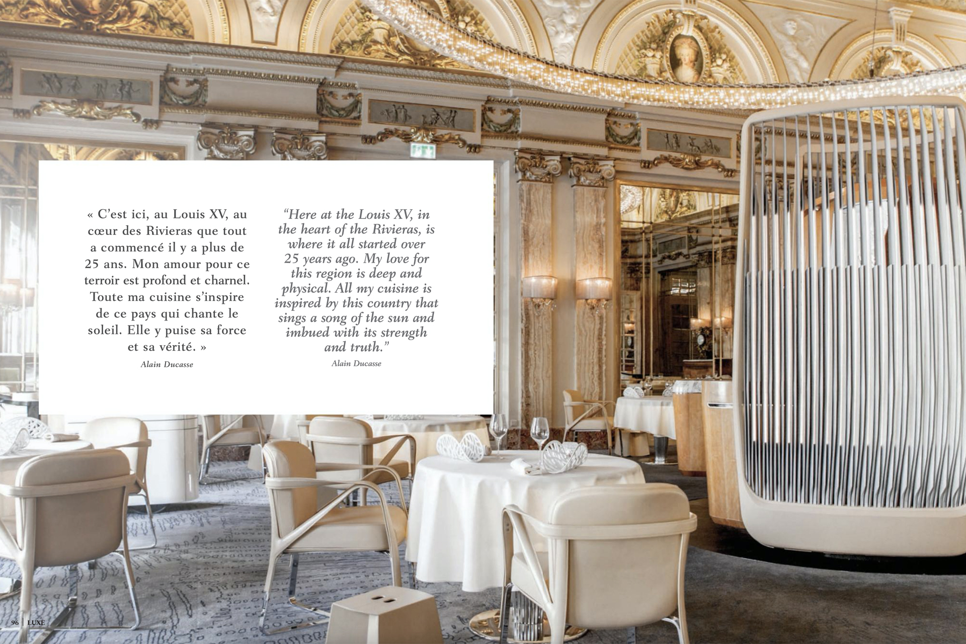 • November 2012: Over 200 famous chefs from 25 countries celebrated the Louis XV’s 25th anniversary.